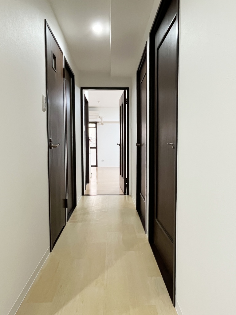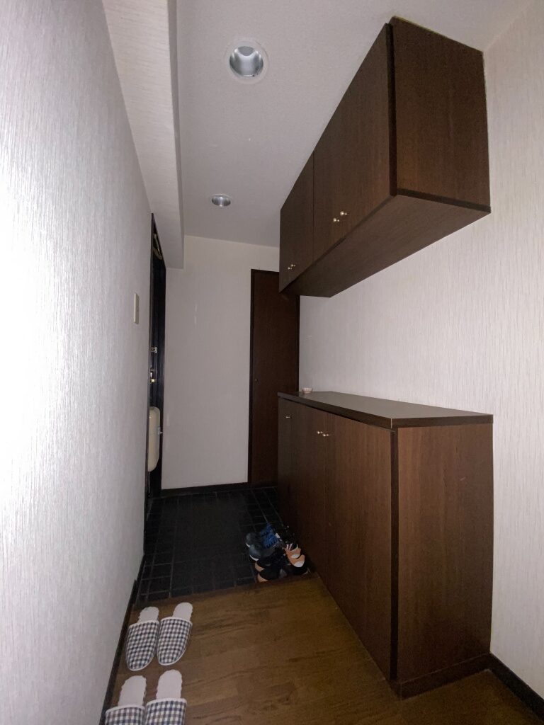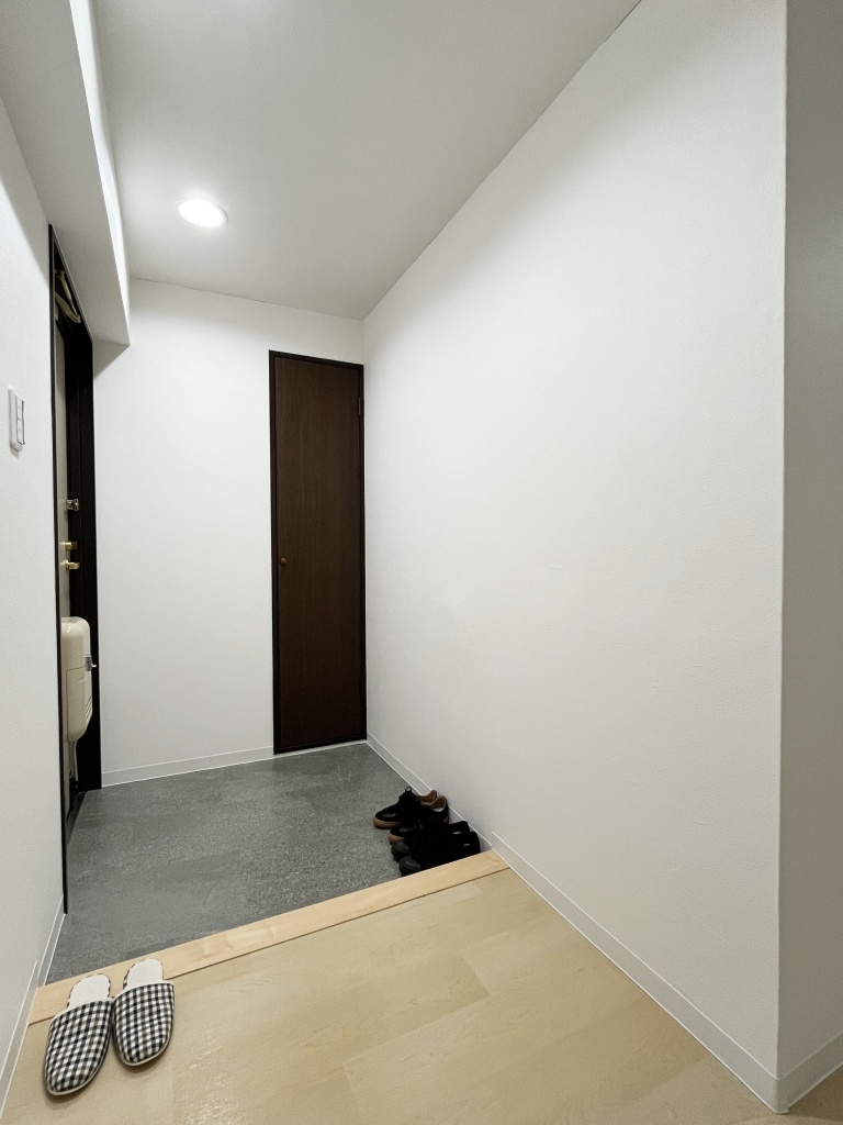 既存の靴箱を撤去し、天井・壁のクロスを貼り替えました。