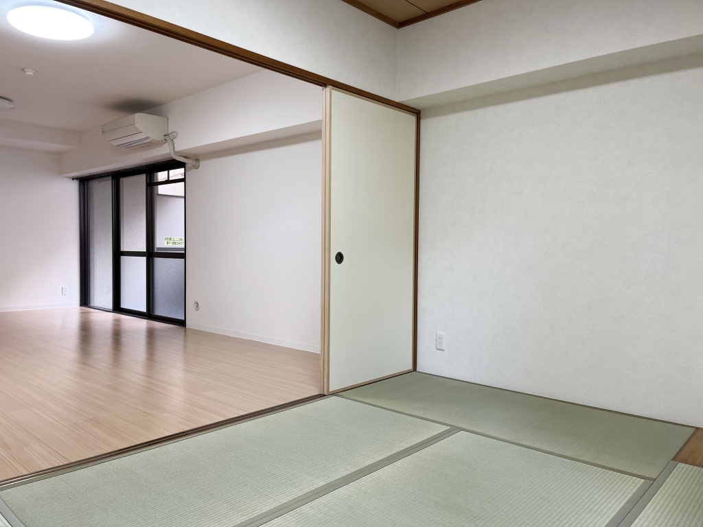 入り口の引き違い戸、押し入れの引き戸、天袋の引き戸は新調しました。