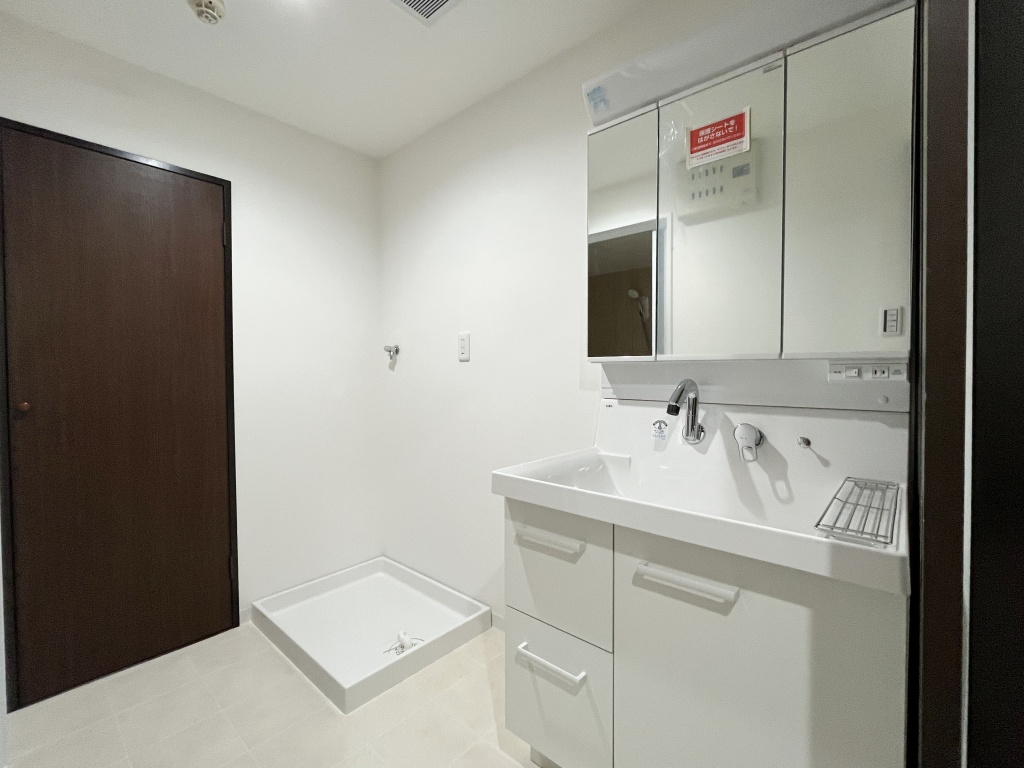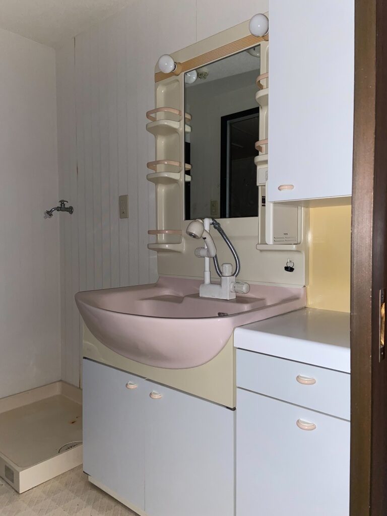 内装を一新し、LIXILの洗面化粧台「ピアラ」に取り替えました。収納付きの3面鏡、引き出し収納ですっきり片付きます。