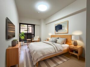 天井・壁のクロスを貼り替え、床は木目調の長尺シートを貼り、明るくなりました。