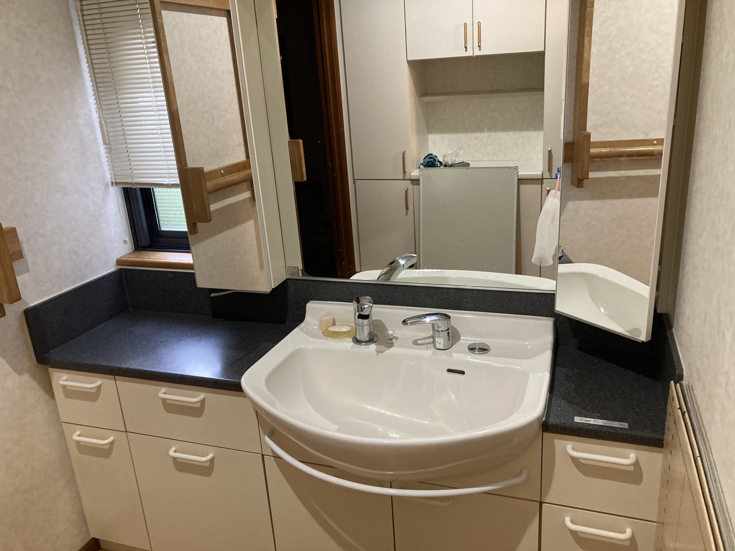 洗面所の内装を一新し、洗面化粧台を取り替えました。