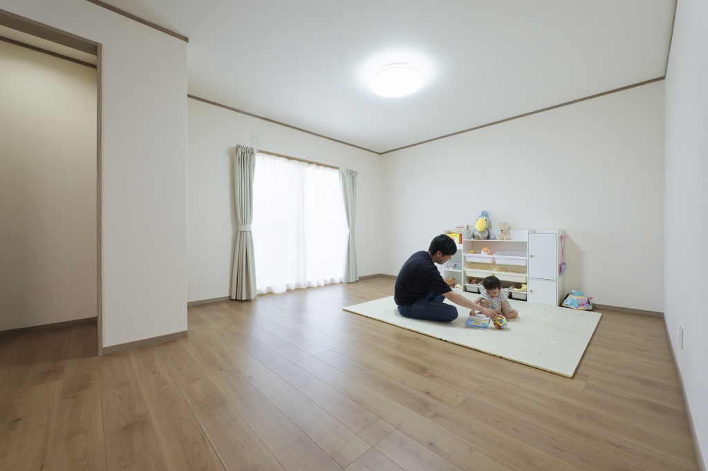 ワックス不要、へこみにくく傷がつきにくい床材なのでメンテナンスがラクになります。床暖房にも対応。