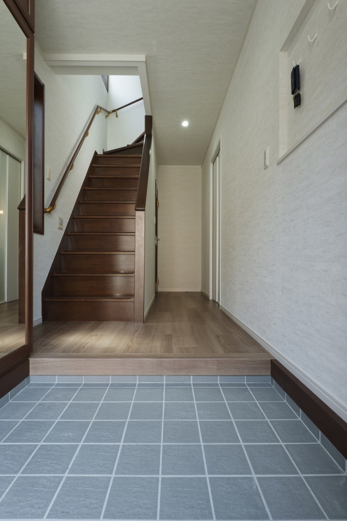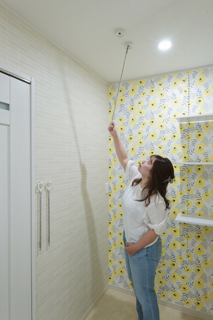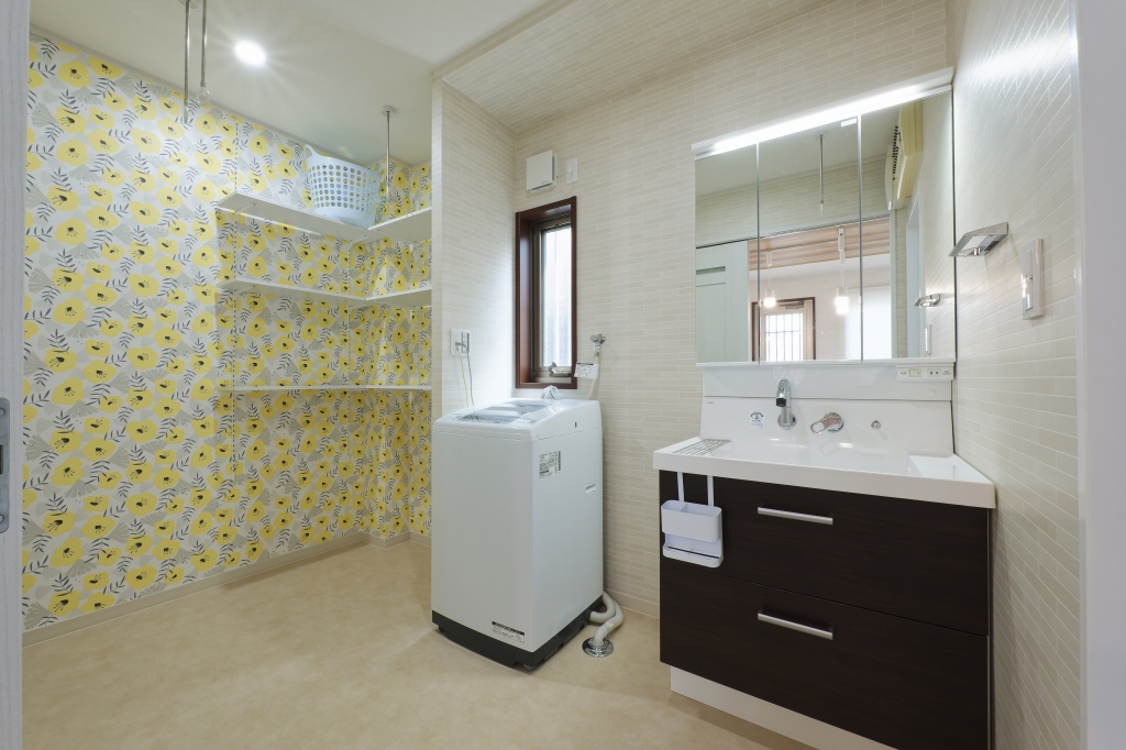 納戸は洗面室に取り込み、室内物干しを設置したランドリースペースを新設。家事動線も格段に良くなりました。