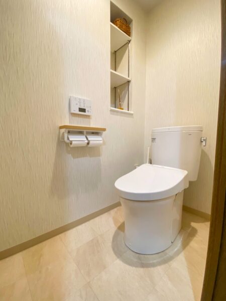 凹凸の少ないフォルムでお掃除しやすく、清潔感のある見た目と使いやすさ、どちらも叶えたトイレ空間になりました。