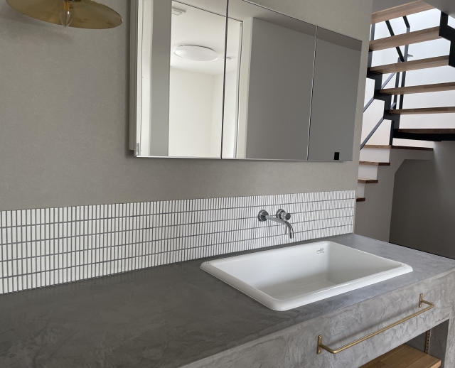 キッチンや洗面、玄関まわりでは、モルタル調・左官風仕上げが引き続きトレンドに。