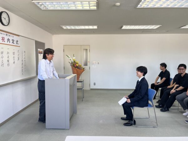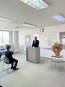 びしっとスーツ姿で少し緊張している様子でしたが、式の間も笑顔を見せてくれる場面があり、これから一緒に働く仲間として迎えられることを、私たちもとても嬉しく思いました。