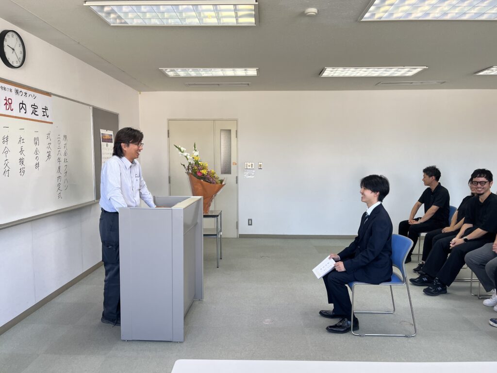 本日、10月1日に2026年卒業予定の内定者、織田くんの内定式を行いました。