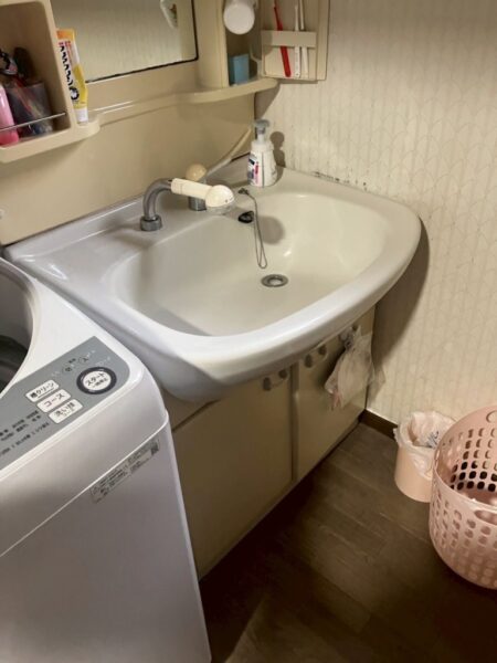 洗面所も同じく年数が経ち、クロスや床の汚れ、洗面化粧台の老朽化が見受けられました。
