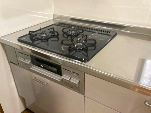 ガスコンロは、据え置きタイプからビルトインタイプへ変更。