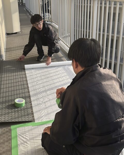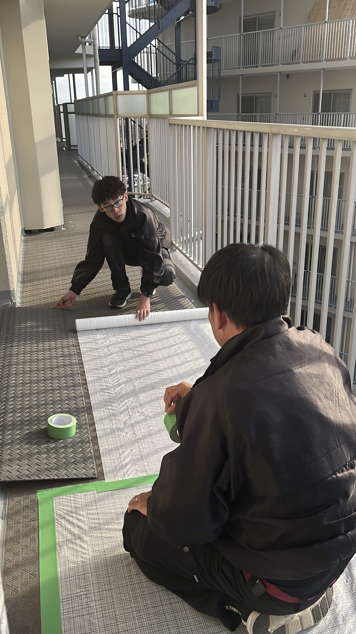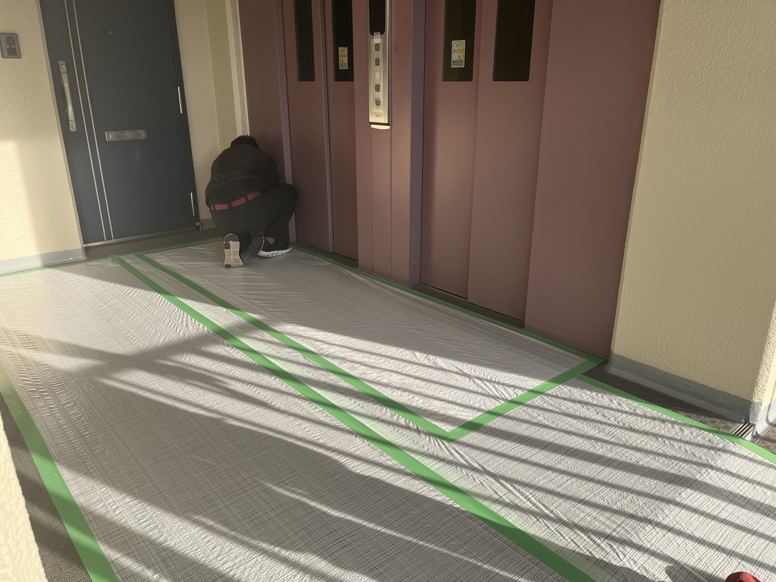 マンションなので、通路やエレベーターといった共有部分もきちんと保護していきます。