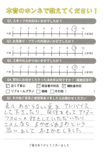 その小冊子を読んでいただき、「丁寧にしてくれそう」「地元の会社で安心できる」と、工事をお任せしていただきました。