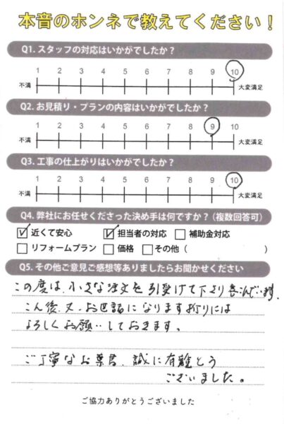他に、3社見積りをお願いしたのですが、担当の長野さんやスタッフのみなさんとが一番、話がしやすかったように思います。