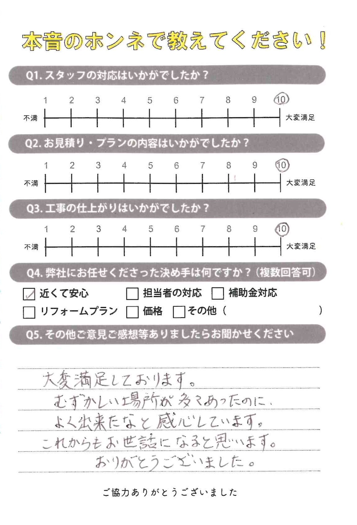 大満足しております 高砂市K様(カーポート波板貼り替え) 2025年12月22日 お客様アンケート 高砂市K様(カーポート波板貼り替え) 大満足しております。 むずかしい場所が多々あったのに、よく出来たなと感心しています。 これからもお世話になると思います。 ありがとうございました。 ありがとうございました!